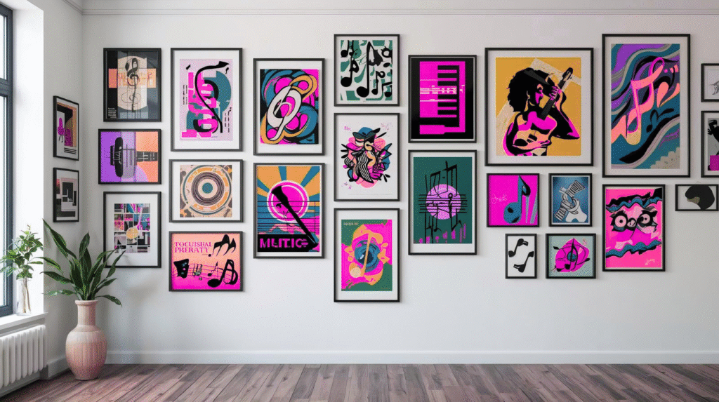 We turn musical inspiration into visual expression across all genres and formats. From lyrics and set lists to band imagery and music quotes, our designs celebrate the universal language of music through art that connects and inspires.